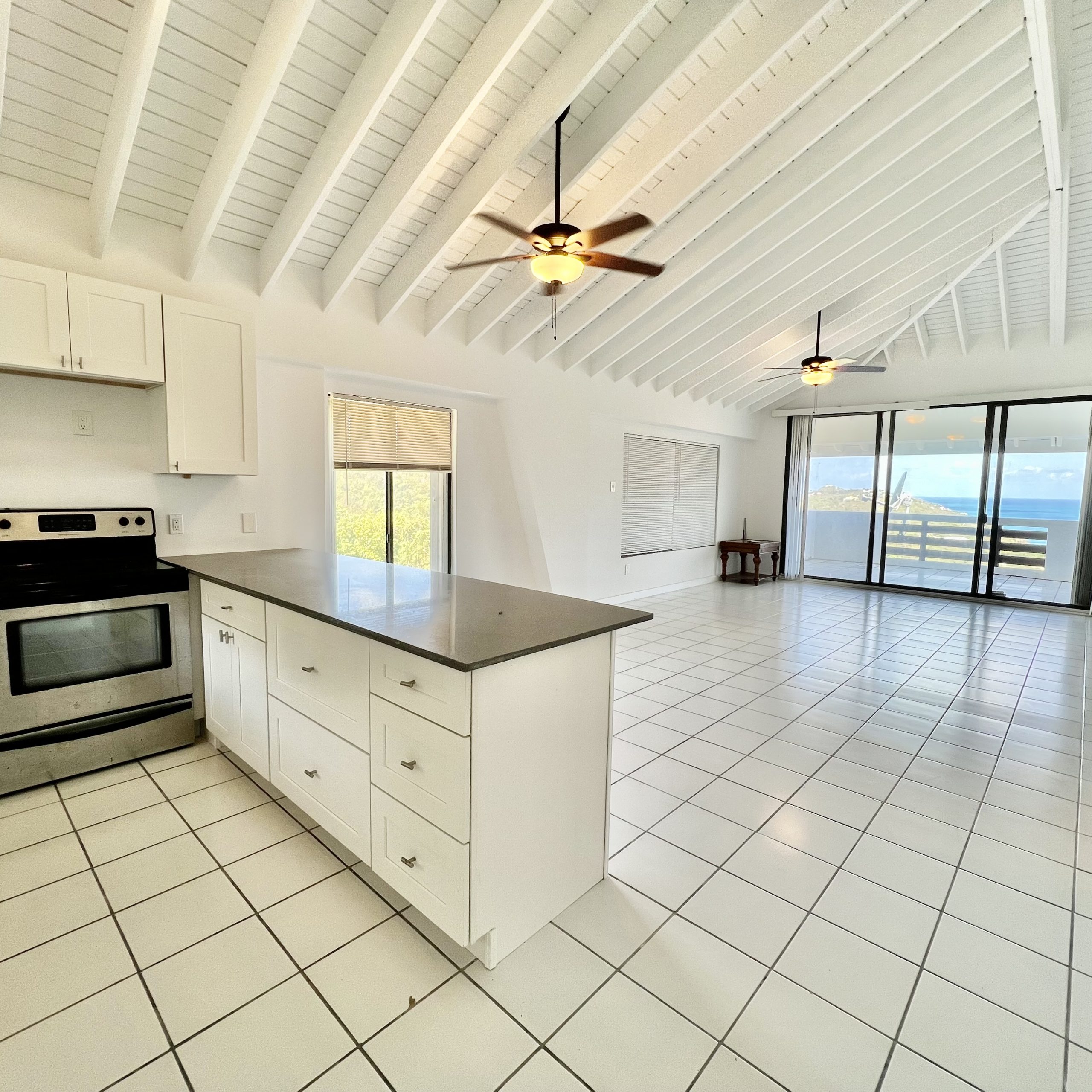 Executive 2 bedroom 2 bathrooms unfurnished Condo with loft. Equipped with a Refrigerator, Stove, Split A/C in each room, Washer/Dryer, Swimming Pool and a large porch with ocean views of the Atlantic!